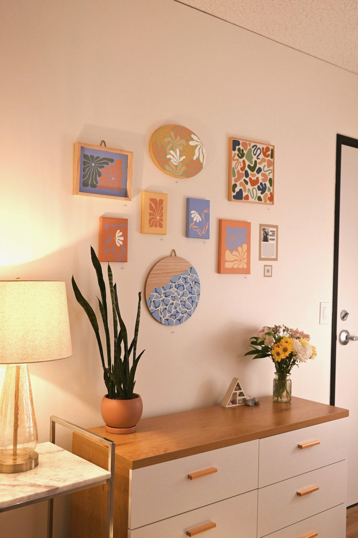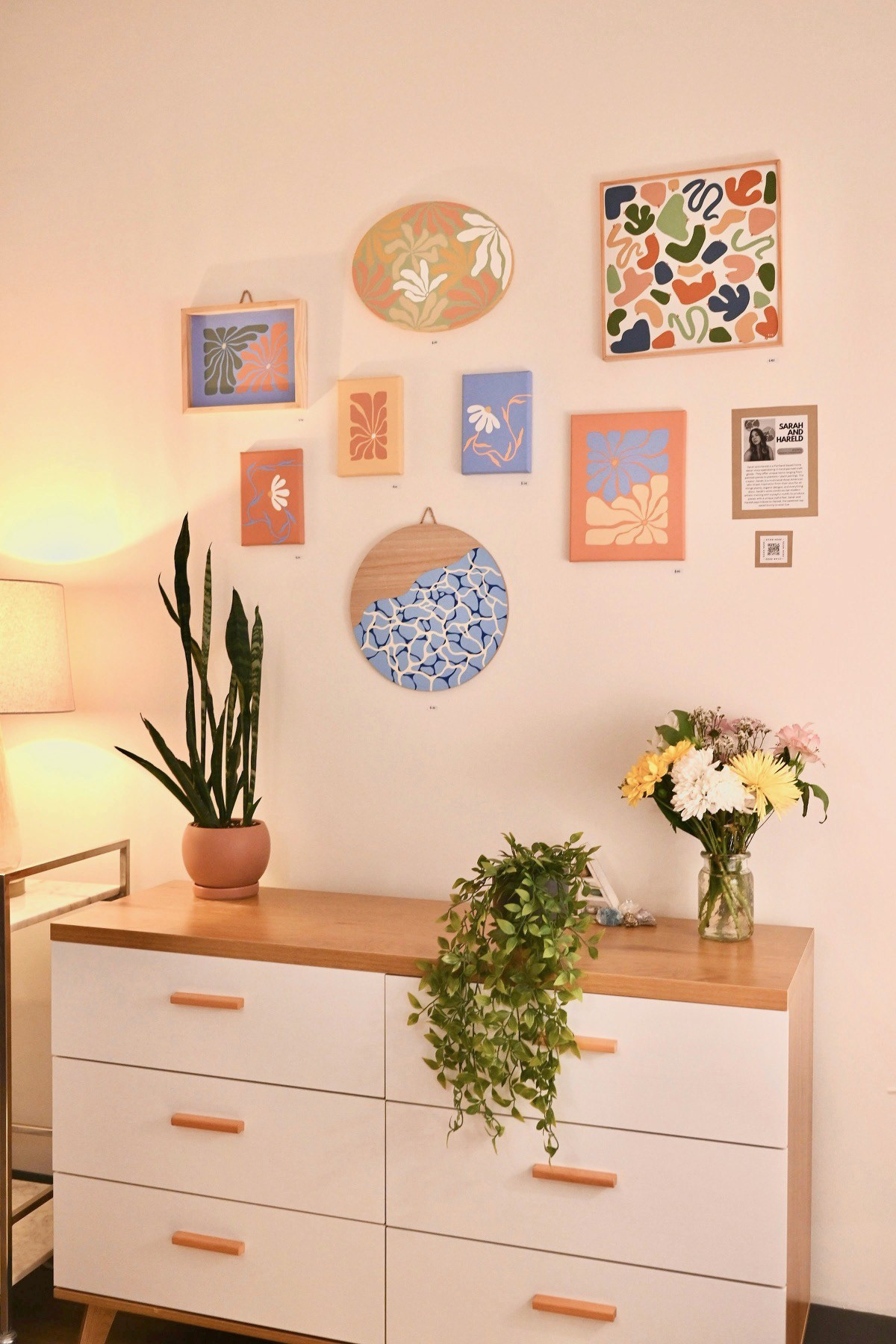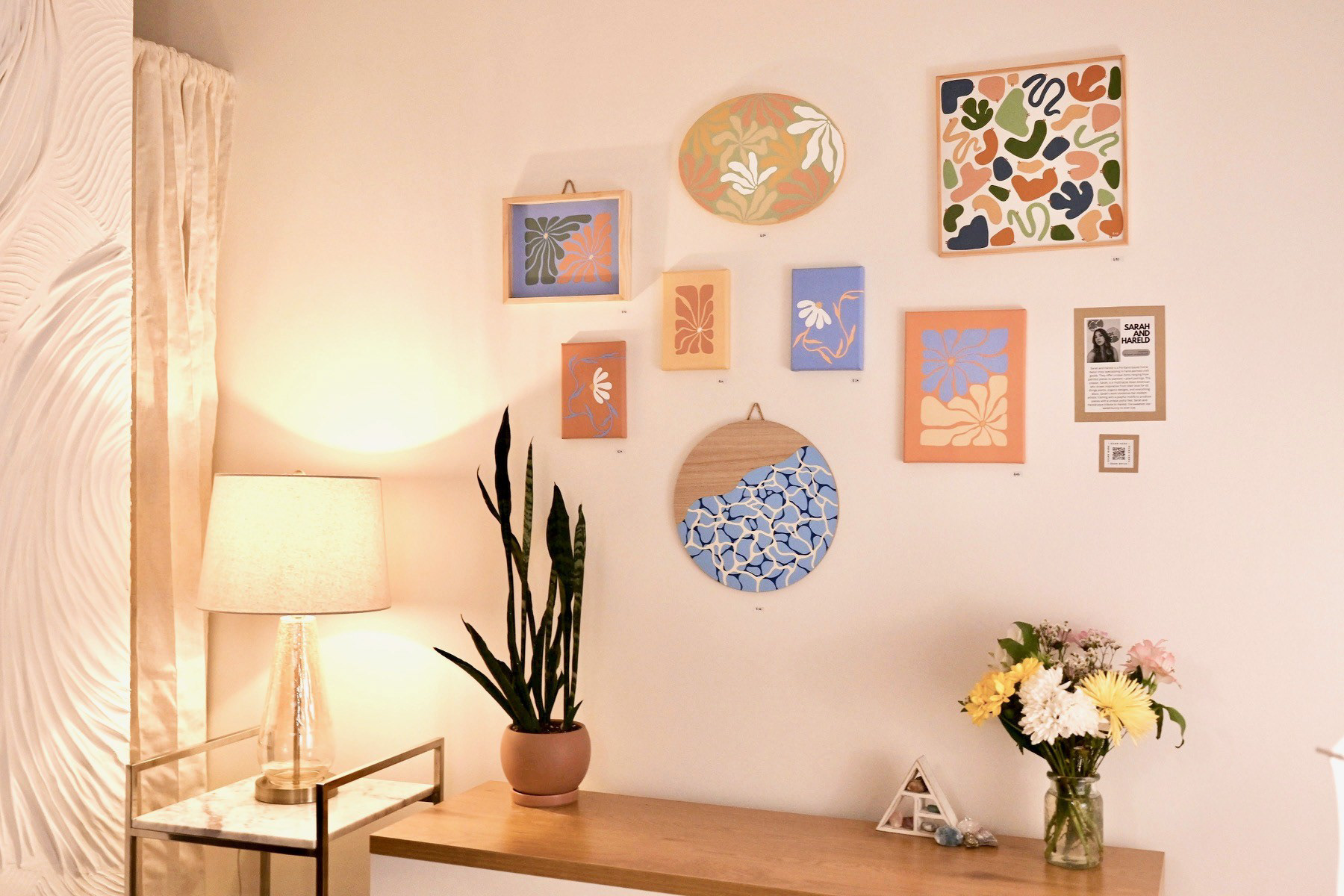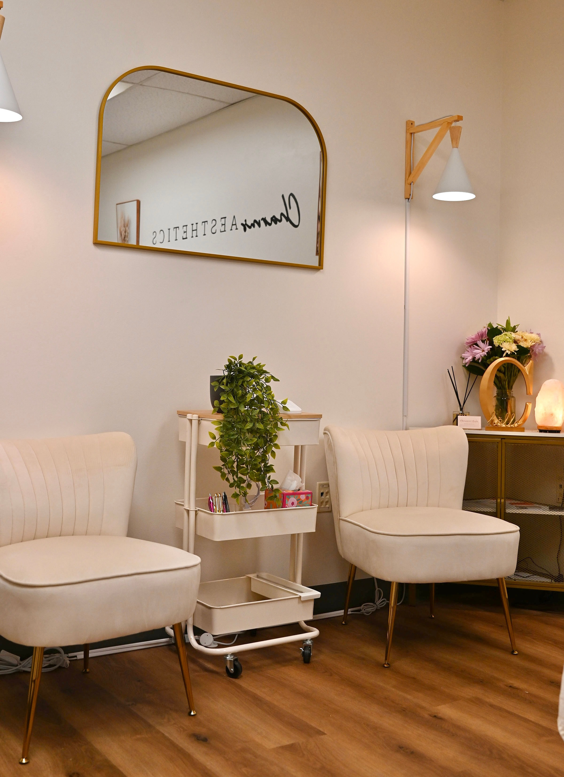 This COMMERCIAL project was a full redesign of a skincare studio inside a coworking building in Beaverton, OR. I handled layout, lighting, color palette, a mural, and custom artwork to enhance a warm and welcoming space. The client gave me creative freedom, so I experimented with different layouts and enjoyed making art for this space. A custom 8-foot 3D TEXTURED artwork hangs on a concrete pillar as a focal point, alongside a gallery wall featuring colorful pieces by local artist Sarah Kling (sarahandhareld). This project taught me patience, realizing THAT great design takes time. I had so much fun turning this vision into reality!